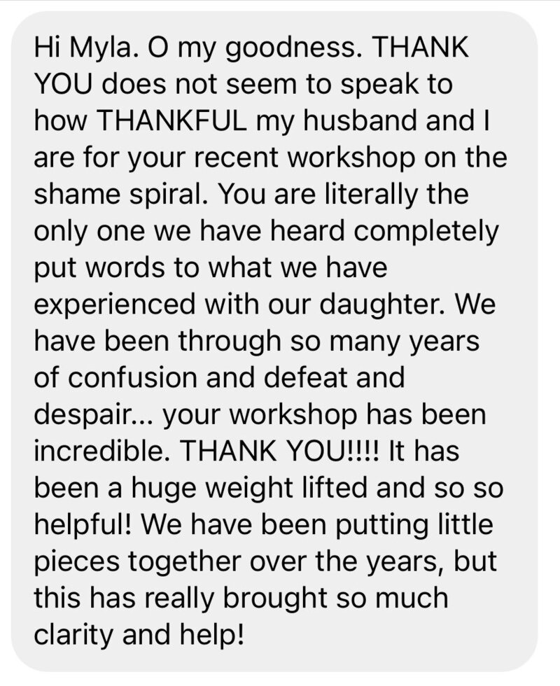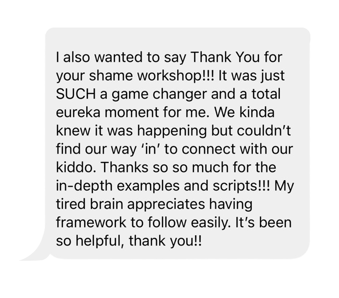 - Join the 1000's of parents who have taken this workshop and have uncovered the hidden role of shame.